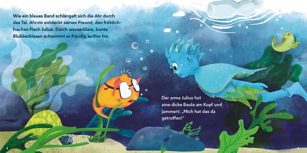 Das Buch beschreibt die Erlebnisse von Ahrvin und seinen Freunden im Ahrtal. Wie kommen Dinge in die schöne Ahr, die dort nicht hingehören?